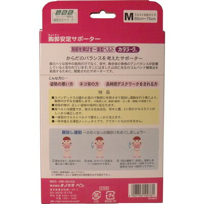 姿勢矯正ベルト カタラーク 女性用 Mサイズ●肩回し運動で肩のハリ、ラクラク●薄型メッシュで背筋キョウセイ●ウエストベルトでスタイルアップ●薄型メッシュタイプ●一体型ベルトで調整自由自在●肩、姿勢すっきり、からだのバランスを考えたサポーター★