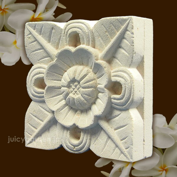 レリーフに彫られる花などの模様は、昔からある伝統的な絵柄をモチーフに製作しているので、この花がモデルです!っていうものは無いそうで、現地の職人さんもわからないみたい(笑) ・サイズ:W100×H100×D30mm 480g ・片面彫り ※素材は欠けやすく、重量がございます。