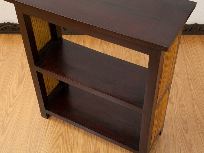サイズ 横幅 60 × 奥行 25 × 高さ 70 cm 内寸 ) 上段・下段 : 横幅 47 × 奥行 21 × 高さ 26 cm 【A5サイズの本・DVD等が入ります】 カラー ブラウン 素材 マホガニー材、バンブー材 仕上げ オイル塗装、天然樹脂仕上げ 備考 ・1点1点手作りのため、サイズ・カラーに多少の差がございます。