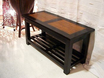 マホガニー材とバンブー材のコンビネーションがアジアンテイストたっぷりです! ベンチ、テーブル、オープンラックなど色々な使い方ができるミニサイズのバンブーテーブル。